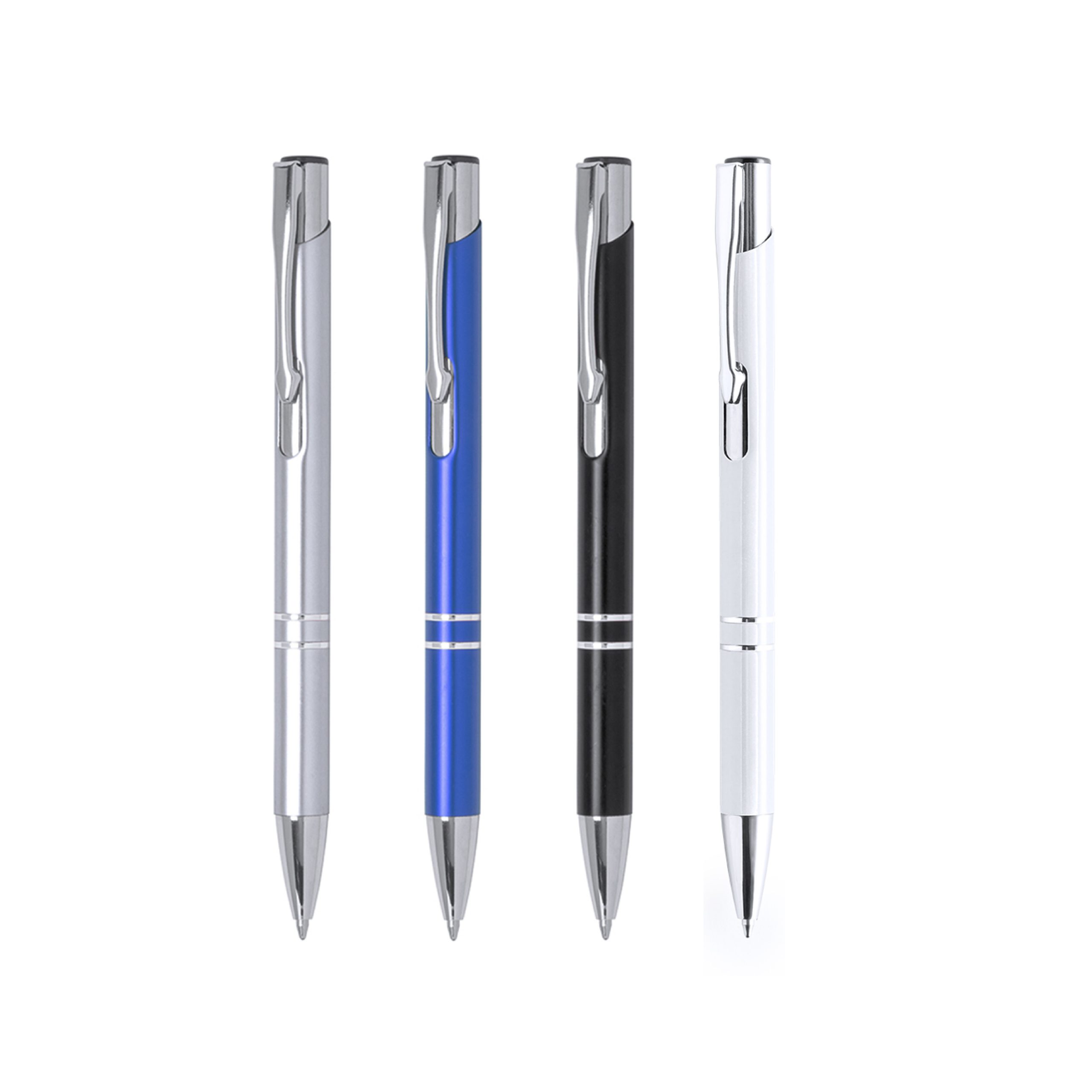 Original push-button mechanism ball pen in an elegant two-tone design. Die-cut aluminium barrel with smooth finish in various colours. Original clip, rings and tip in silver.